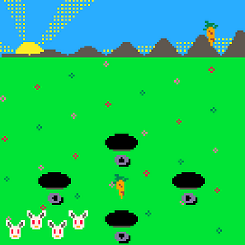 Collect a large harvest of carrots with the help of your cute rabbit friends! Don't scare the rabbits away! How many can you get before the day is done?